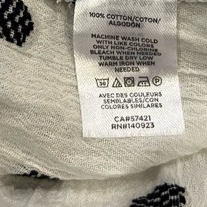 Top is simply adorable with elastic top, elastic puff shirt sleeves, side slits and 100% cotton. Top is a loose swing style with black decorations with short fringe. Measures approximately appropriately 17” pit to pit and pit to hem approximately 11”