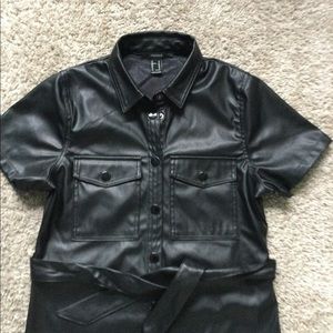 Faux Leather Button Down Dress