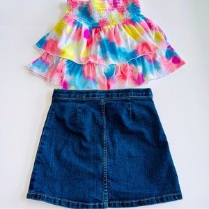 1) Justice pastel skirt. Tiered ruffles. Built in shorts. Size 6/7.