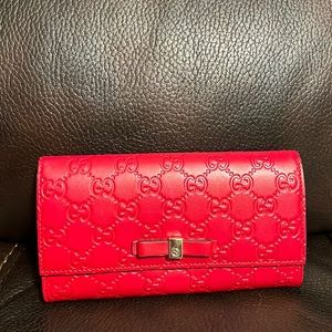 Guccci GG Emily Bow logo monogram leather long Continental wallet clutch