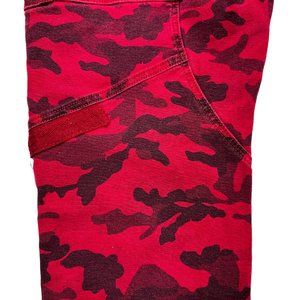 These Damati Red Army Camouflage Slim Fit Jeans feature zippered thigh and front pockets, decorative thigh snaps, and adjustable leg openings
