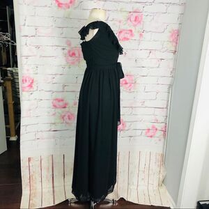 Fun flirty and feminine lined flowy true wrap flutter straps crossed back formal gown. Excellent used condition shown on a 2/4 mannequin and was too tiny to wrap and close completely. Best for size 00