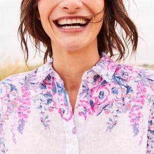 NWT Joules Jeanne Print Floral Linen Button Down Shirt 6
