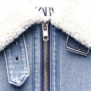 ZARA WOMAN COLLECTION Cropped biker jacket with lapel collar and long sleeves. Front pockets. Interior lining with contrast fleece. Front metal zip closure. Color: Indigo