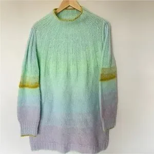 Great condition with no flaws. Sz M and measures 24 inches across chest, and 32 inches long; oversized chunky fit.