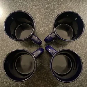 Four 16oz mugs, cobalt blue. No chips