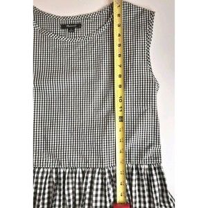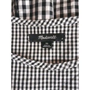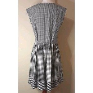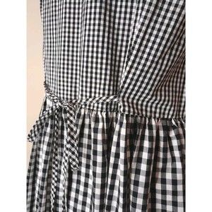This Madewell dress is the perfect addition to your summer and spring wardrobe. Featuring a black and white Gingham check, a round neckline, drop waist, tie back and a sleeveless design. In great pre-owned condition with no issues.