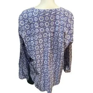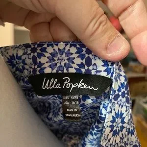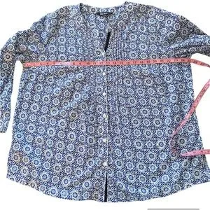 Ulla Popken blue and white patterned blouse. Size 16/18. All cotton. Long-sleeve, button down. Great condition.
