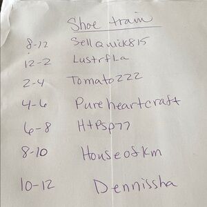 It’s shoes correct? So bltt1271 is before u and htpsp77 is after u tomorrow I think u are a fill in right? This is for tomorrow