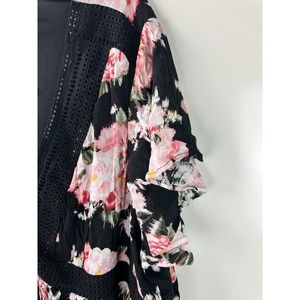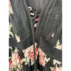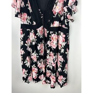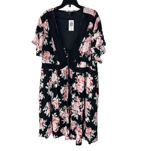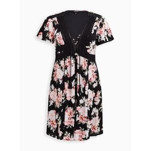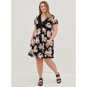 NWT Torrid Mini Gauze Lace Up Skater Dress Black Floral Print Plus Size 5 5X