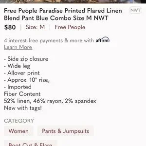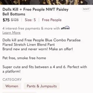 New: Free People + Dolls Kill Paisley Pants. Size Medium