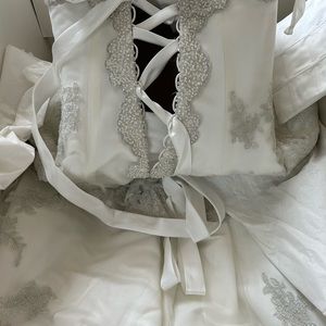 Private collection wedding dress. Lace and polyester. Ribbon backing for lacing.