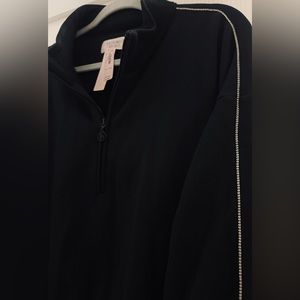 NWT Victoria’s Secret Black Rhinestone Oversized Half Zip Pullover | Size XXL