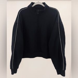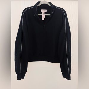 NWT Victoria’s Secret Black Rhinestone Oversized Half Zip Pullover Sweatshirt Half Cropped | Size XXL
