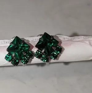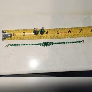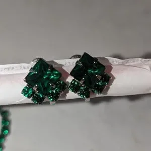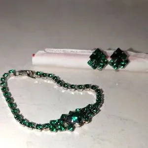 Vintage set emerald green bracelet and earrings