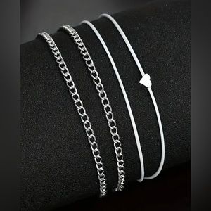 3/$20 Layered Wrap Around Heart Anklet Silver Tone White NEW