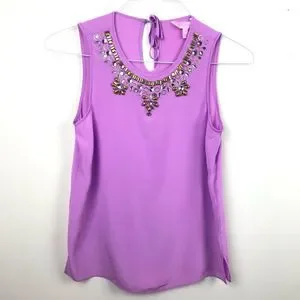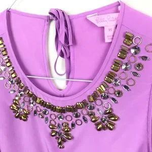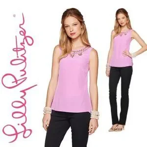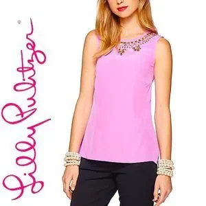 Lilly Pulitzer Havana 100% Silk Pink Embellished Jeweled Neck Blouse Top 58738