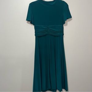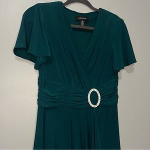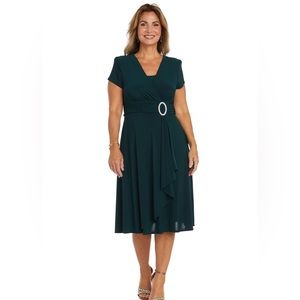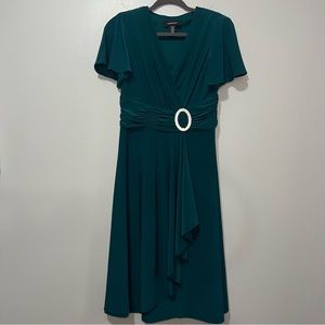 R&M Richards Faux Wrap Dress with Waist Embellishment in Hunter Green