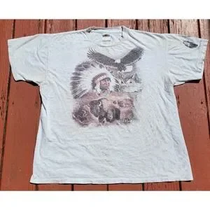 Vintage 90s Aztec Indian Chief Buffalo Bison Bald Eagle T-Shirt Size XL Cowboy