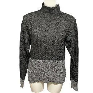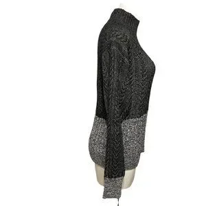 Splendid Cable Knit Colorblock Mock Neck Sweater
