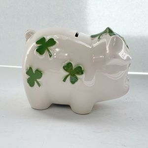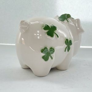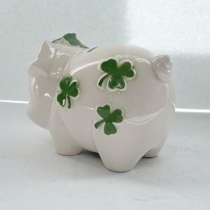 Vintage Lefton Ceramic Shamrock Piggy Bank Clovers Lucky