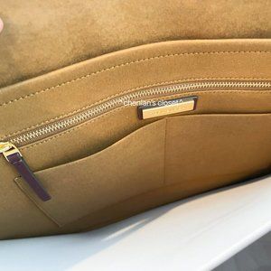 Stunning bag! Beautiful beetle berry color contrast with cream color, gold detailing. Goes well with everything. Authentic. Brand new with tags. This is the larger version of this line.