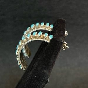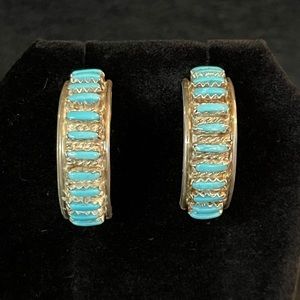 ZUNI TURQUOISE HALF HOOP STERLING EARRINGS