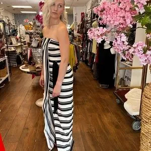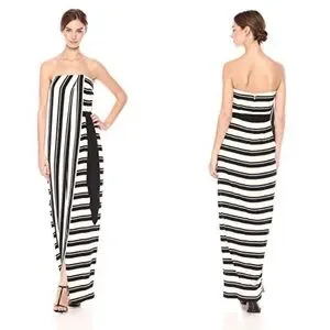 NEW Halston Heritage Black & White Strapless Striped Gown with Tie Waist & long split