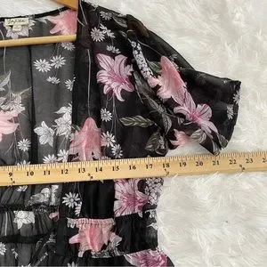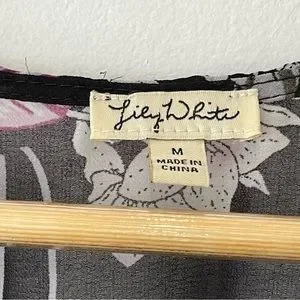 Lily White Floral Tie Front Swim Coverup Woman’s Medium High Low Short Sleeve