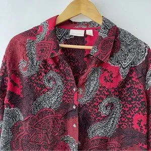 Chico’s Paisley Roxanne Top Woman’s 3 (XL) Button Down Long Sleeve Office