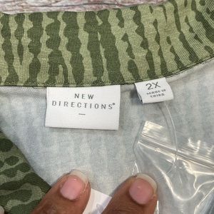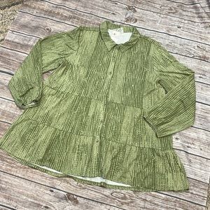 NWT New Directions button front long sleeve tiered blouse size 2X green