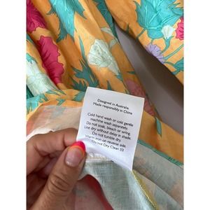 NEW Ephemera Tiered Mock Neck Garland Smock Colorful Floral Yellow Mini Dress