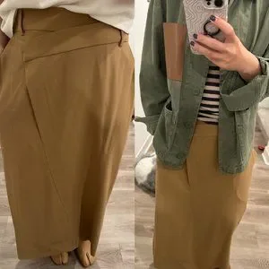 NWT Cordera Straight Tailoring deconstructed Asymmetrical Skirt Camel