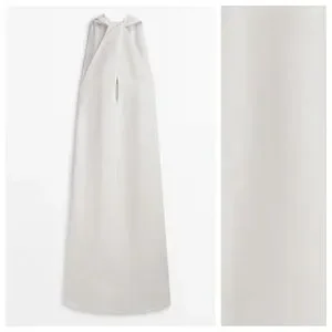 NWT. Massimo Dutti White Midi Dress with Criss-Cross Detail at the Back. Made from linen and viscose. Halter neck, V-neck. Sleeveless. Thick straps. Size S. Ref. 6690/102. Pit to pit 20" flat, waist 21", length 52,5". MD1. 1031.