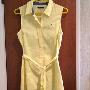 Tommy Hilfiger, Yellow and White Gingham, Lightweight, Sleeveless, Shirt Dress, with pointed collar, 100% Cotton, Size: 8