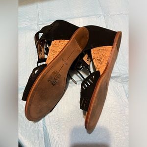 DolceVita Lina Black Suede Cutout Tie Ankle Wedge Sandal