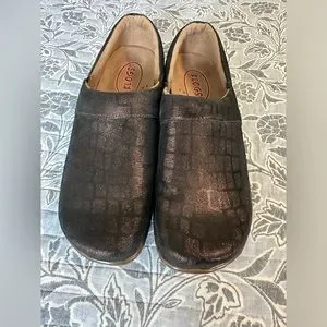 Klogs, metallic brown crocodile print, size 11. Practically new! Too big for me, unfortunately.