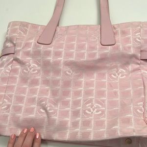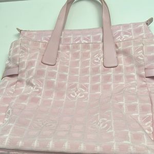 CHANEL Authentic 8207260 13”x12.5x4.5”PINK LG Bag Tote shoulder Travel line Bag