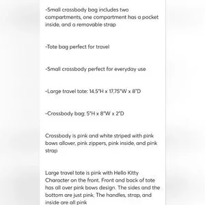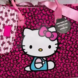 Hello Kitty Sanrio Travel Tote Crossbody Bag Luggage Tag 3 Piece Set NWT