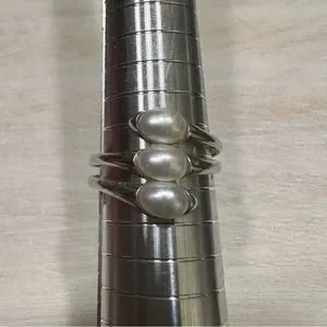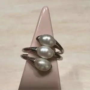 Three row vertical pearl stone sterling silver ring. This ring is great for everyday wear, never worn or used.