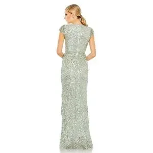 Mac Duggal SEQUINED FAUX WRAP RUFFLE CAP SLEEVE GOWN NWT SIZE 2