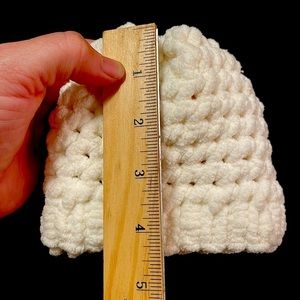 Handmade Knitted Newborn Baby Beanie Hat, Buttercream color, super soft, NEW! 12” circumference, 4.75” high x 5.5” wide.
