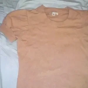 Banana Republic beautiful tan sweater short sleeve no frayed edging soft and comfortable cute rouching on shoulder adorable quality fabric built to last