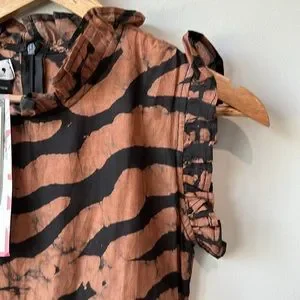 We partnered with Studio 189 on an exclusive capsule of bold printed styles thoughtfully produced in Ghana with locally sourced cotton. Cofounded by Rosario Dawson and Abrima Erwiah, Studio 189 works with African artisans to craft pieces using traditional textile techniques. With ruffles and a vibrant animal print, this midi dress brings the fun to every summer celebration.