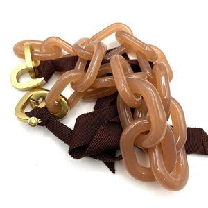 J Crew Nude Pink Lucite Ribbon Necklace Chunky Link Statement Necklace 28"