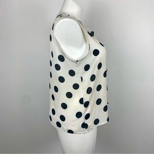 Ann Taylor LOFT Polka Dot Sleeveless Blouse Ruffle V-Neck Ivory & Blue L