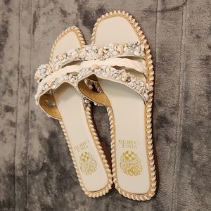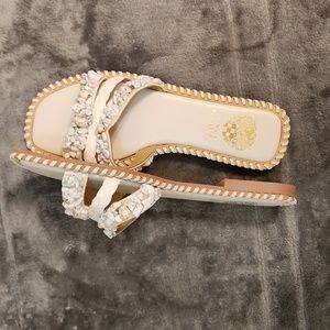 NWOT Vince Camuto Hasyl sandals beige and white fancy flip flopswith real stones