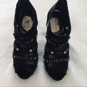Worthington black mesh and rhinestone studded jewel design. Gently used...size 8M...I love these shoes (worn once) my days of wearing stilettoes is over; I was holding on to these (time to let them go) ... see photos for details...