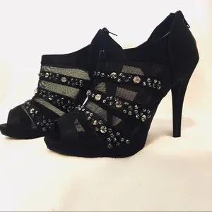 Jeweled and Mesh Black Peep Toe Bootie High Heel | Sexy Fun Celebrity Socialite