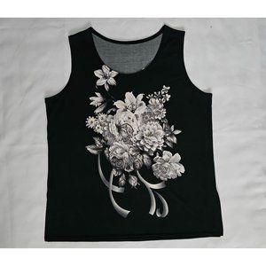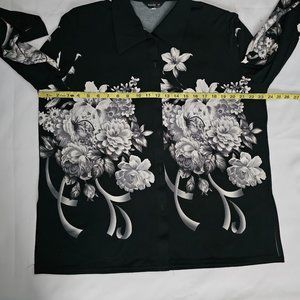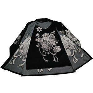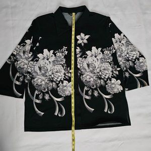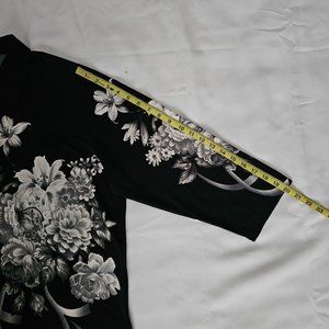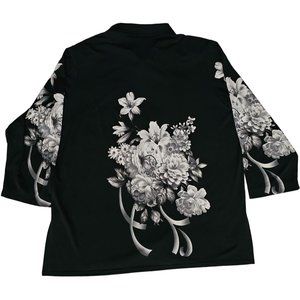 Modelia Women's Floral Print Kimono W/ Inner Sleeveless Blouse Black Size Medium